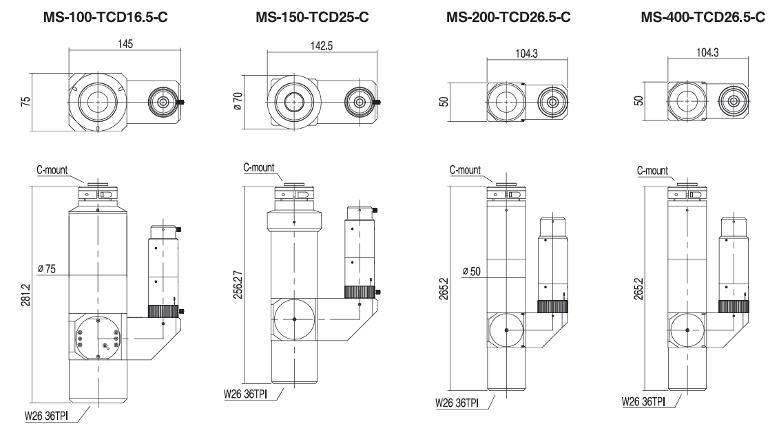 카메라 인터페이스는 C-mount로 구성되어 머신비전 카메라와의 결합 및 시스템 통합이 용이합니다.