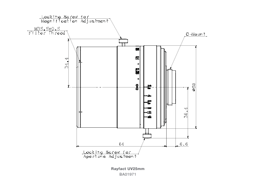 Rayfact UV Lens (∞-0.2x / ∞-0.5x)Rayfact UV-25mm (∞ - 0.2x, C-Mount)
