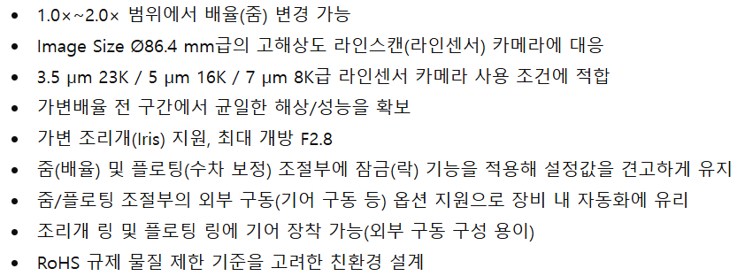 ![]() | Line sensor 카메라용 고성능 렌즈 Nikon Rayfact 1~2x 가변렌즈 |