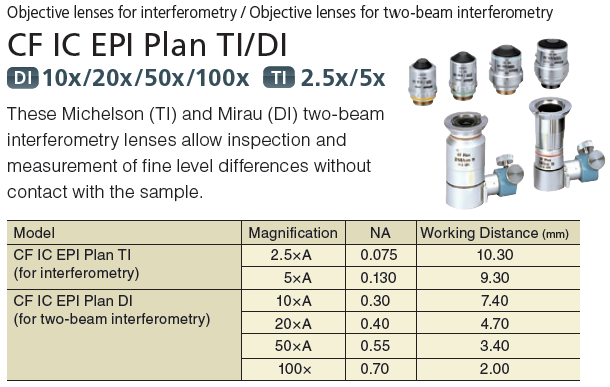 Objective Lens (VIS/Fluor/LWD/WSI)Interferometry Lens (Mirau/ Michelson)