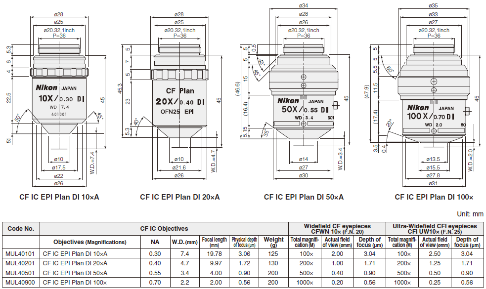 CF IC EPI Plan TI 2.5x/5x I DI 10x/20x/50x/100x