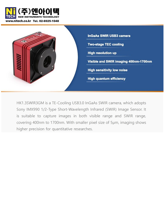 InGaAs SWIR 카메라 연동으로 저노이즈·고감도 이미지 획득 및 USB3.0 인터페이스 구성 가능