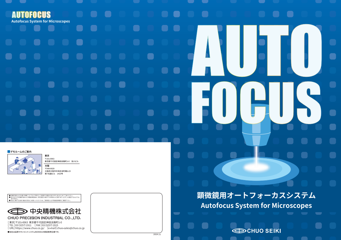 개요 특징 스펙 카탈로그 Objective SliderLinear Motor Type(4구) 개요 AF-OLS-04L-MS AF-OLS-04L-MS는 대물렌즈 4개를 슬라이딩 방식으로 자동 전환하는 리니어 타입 모터 구동형 슬라이더입니다.고정밀 볼스크류와 크로스 롤러 가이드 구조를 적용하여 ±1 µm 반복 정밀도를 확보하며, 대물렌즈 간 간격은 42 mm로 설정되어 있습니다소형화된 단방향 구동 구조로 레이저 가공, 검사 및 측정 시스템 등 장비 내장용 모듈에 적합하며, 전용 컨트롤러(QT-ADL1(K)-AC, RS-232C 원격제어)와 함께 사용합니다. 특징 스펙 카탈로그 중앙정기 AutoFocus Unit